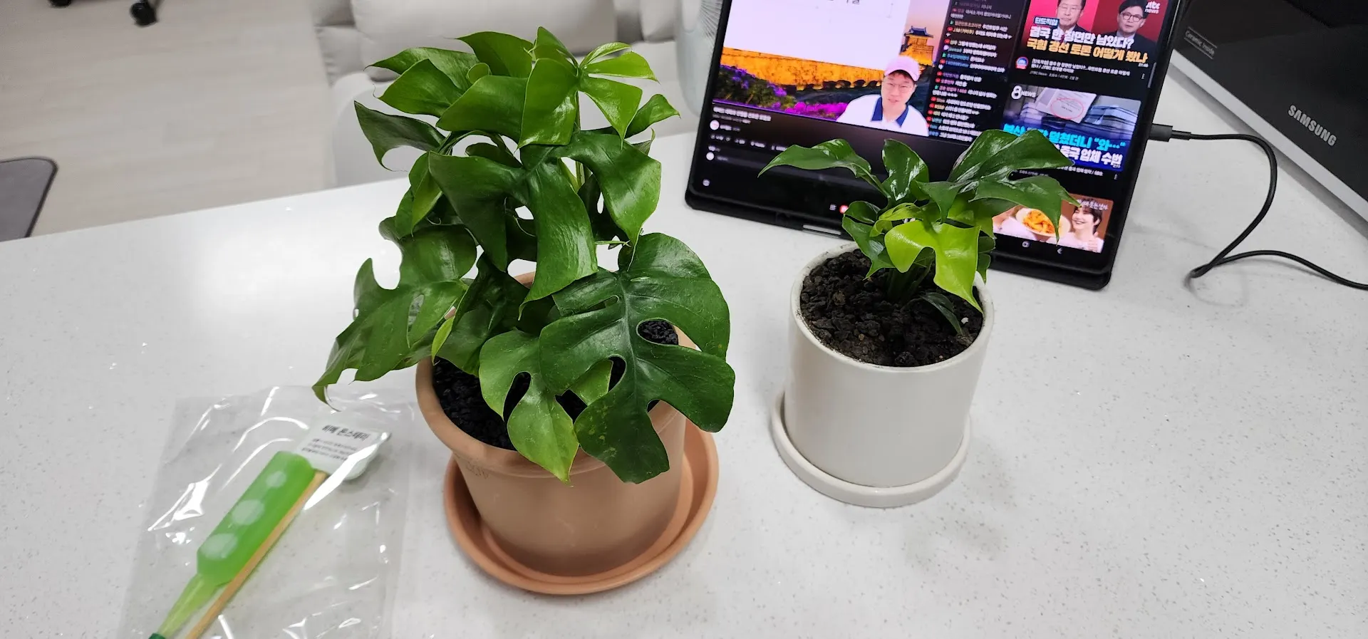 동생에게 선물 받았던 히메 몬스테라가 미친듯이 크더니… 방 하나에 하나씩 저런 상태가 되었다. 그냥 몬스터… 우리들이 어둠의 드루이드였던 것이다. 그래서 이제 물 적당히 주면서 예쁘게 키우고, 가지치기 해서 나눔도 하고 하는데… 맘처럼 쉽지 않다. 어릴 땐 참 귀여웠는데 초록이들 이젠 좀 무서워…