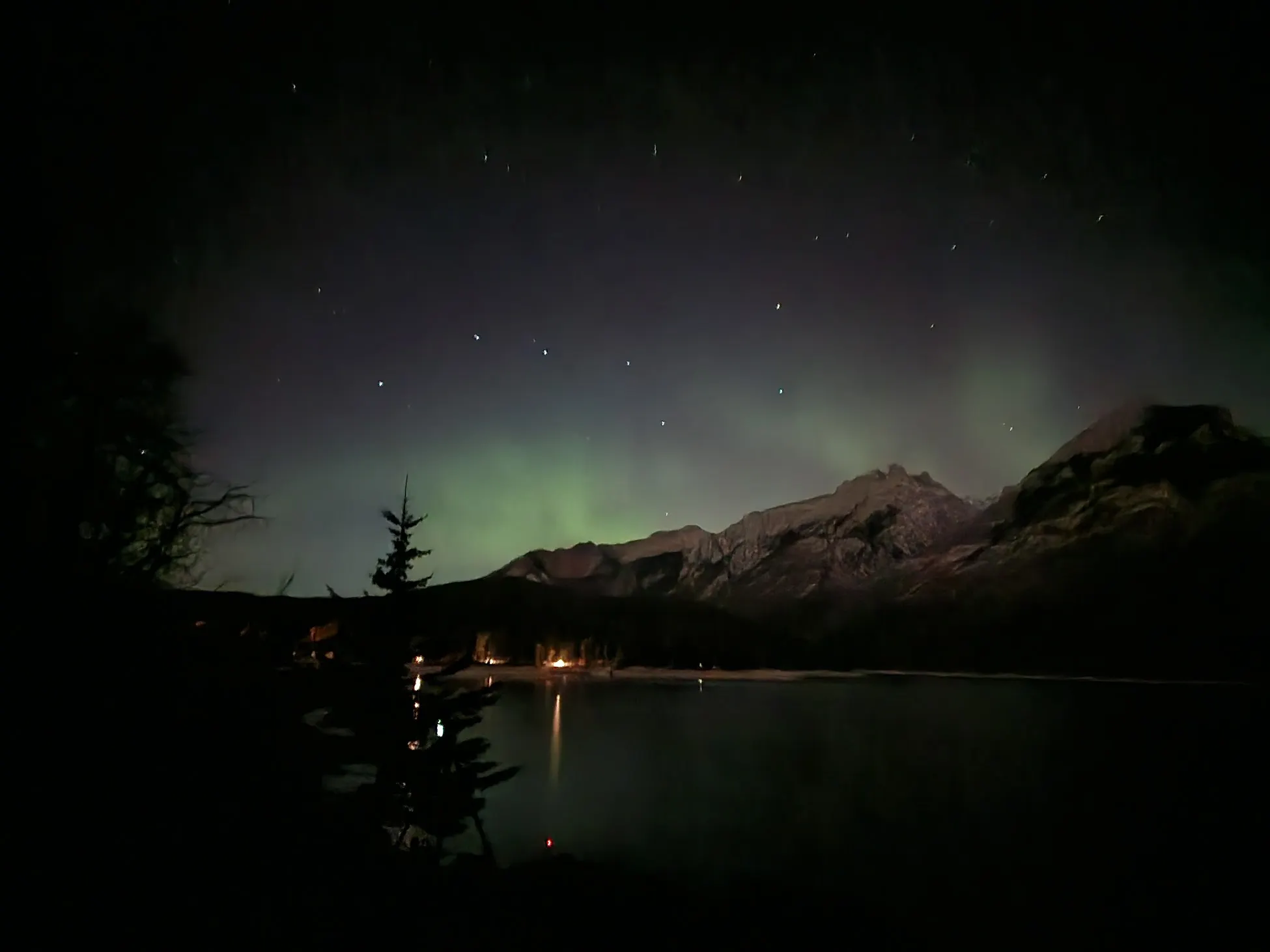 밴프를 떠나기 전 수니의 알림 어플 덕분에 보게 된 희미한 지평선 오로라